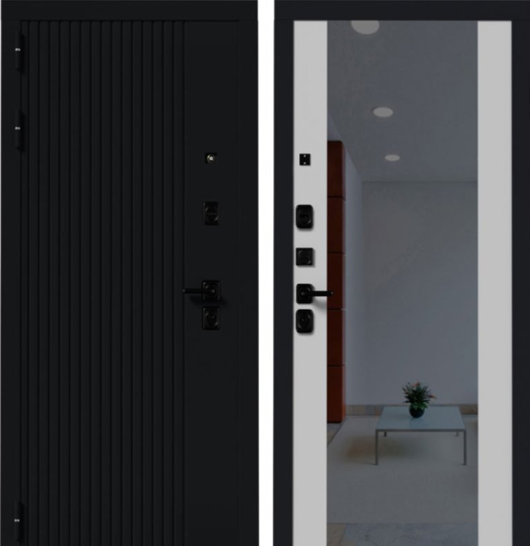 Ручка черная на квадратной планке раздельная стяжная; цилиндр ключ/вертушка, независимая ночная задвижка, глазок над замковой группой.