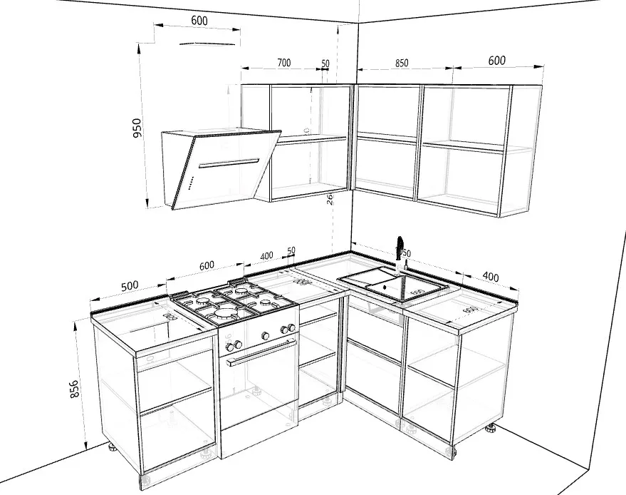 Ручки, столешница, стеновая панель, мойка, смеситель и бытовая техника продаются отдельно.